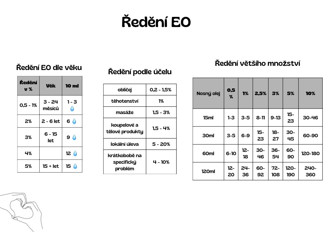 Před použitím olejů na kůži nezapomeňte správně naředit (u dětí dle věku a u dospělých max. 20 kapek na 10ml rollon) a začněte postupně zkoušet, co vám vyhovuje. Používání olejů je jako cvičení, efekt se dostaví s pravidelným používáním.