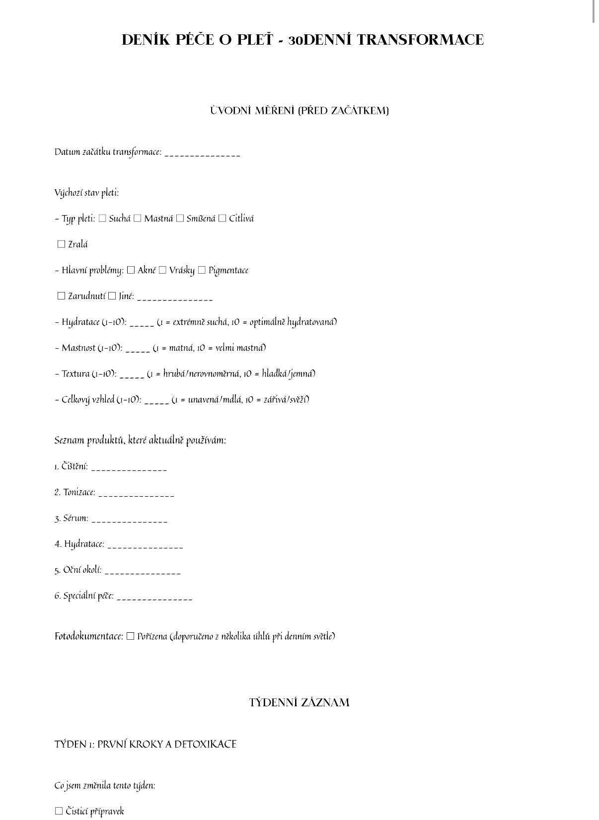 • Bonus 2: Deník péče o pleť - 30denní transformace