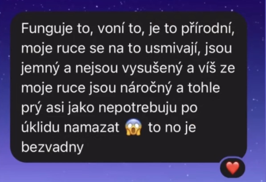 Tady najdete zprávy a postřehy od lidiček, kteří už vyzkoušeli přírodní cestu v péči o sebe i svou domácnost. Každá zpětná vazba je pro mě nesmírně cenná a vždycky mě potěší, když vidím, že i malé změny dokážou přinést radost, úlevu a nové objevy. 💛