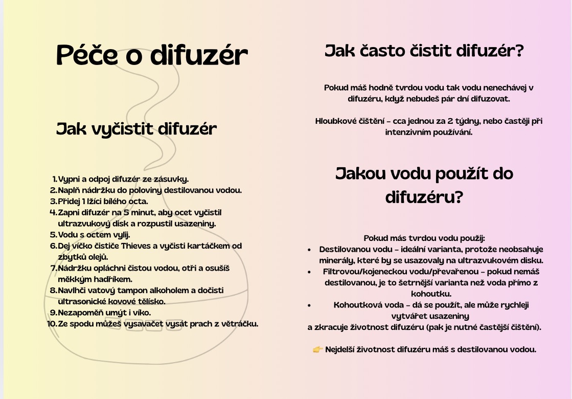 Aby ti difuzér dlouho a spolehlivě fungoval, dopřej mu pravidelnou péči. Není to nic složitého – stačí pár jednoduchých kroků.